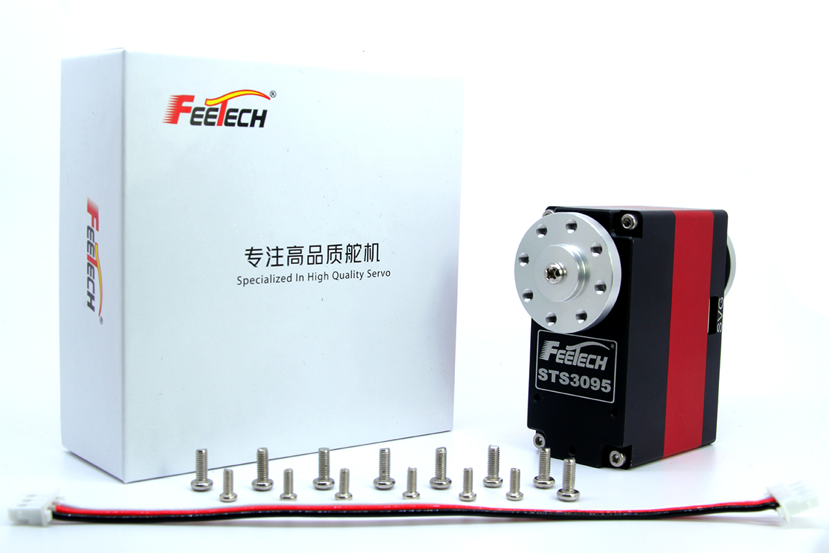 ST-3095-C001是8.4V 105KG 串口总线智能舵机,采用全铝合金外壳、无刷电机、金属齿牙箱、飞特自主研发的TTL控制板,12位高精度磁编码传感器。堵转扭矩105kg.cm,能实现360度任意角度可控,多圈连续转,步进等工作模式,可实现一键设定中位功能,加速度缓启动与缓停止,能反馈位置、速度、电压、温度、负载参数,从而实现过载保护。适合应用在工业设备、机器人等小扭力传动应用场景。 ST-3095-C001 is 8.4V 105kg serial bus smart servo,aluminum alloy case is used、core motor,metal gearbox 、Feetech self researched and developed TTL control board.The stall torque is 105kg.cm,multi-turn continuous operation mode,it can realize the function of setting the middle point with one key,acceleration slow start and slow stop,can feedback position、speed、voltage、current、temperature、load parameters,thus, overload and over-current protection can be realized. It is suitable for application in industrial equipment, robot and Small torque drive application scenarios. |